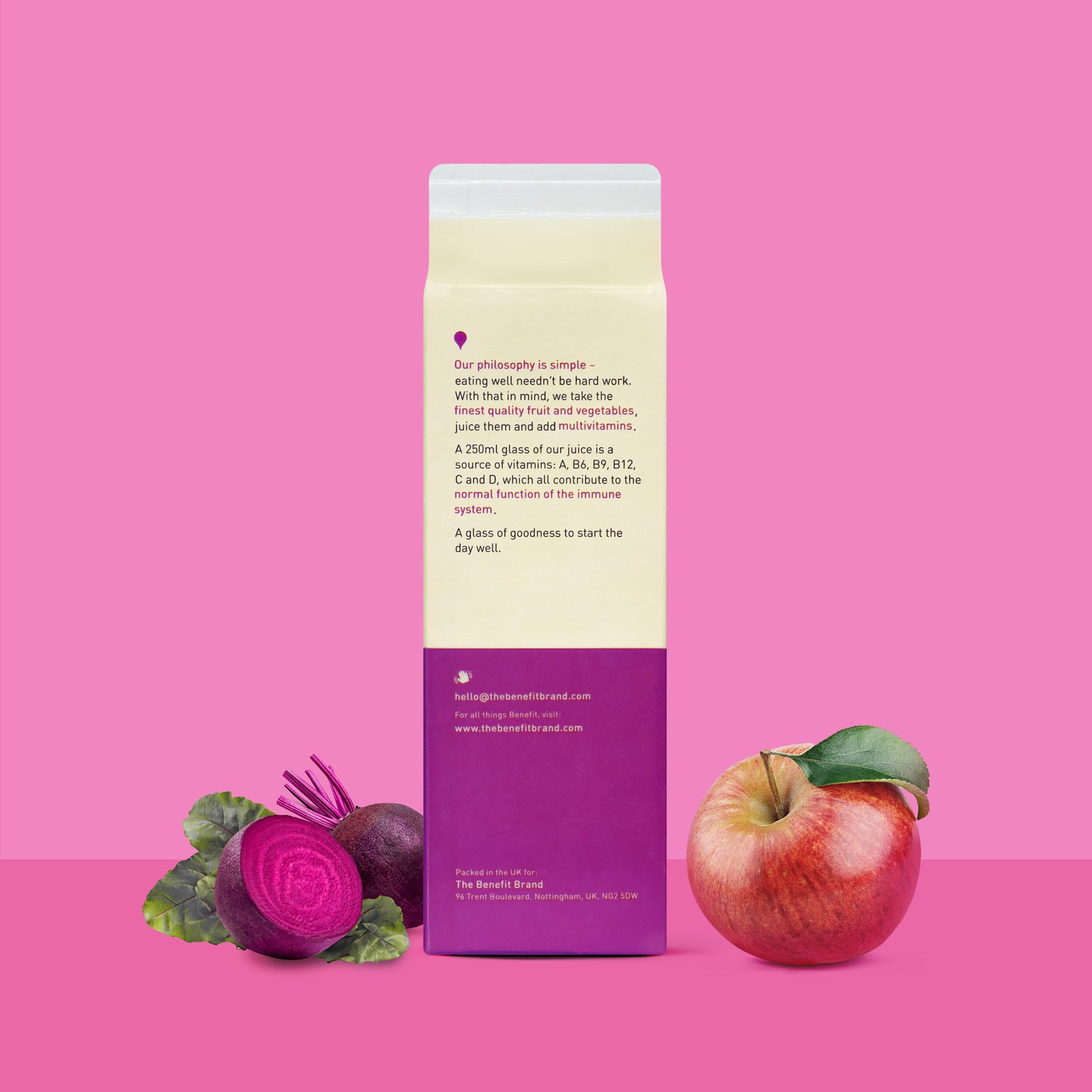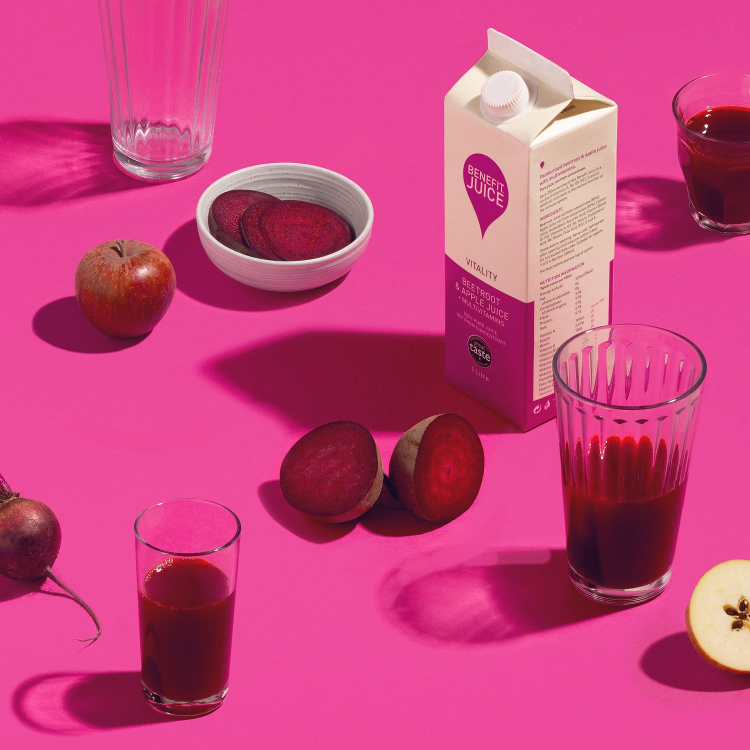 Our Beetroot & Apple Juice certainly delivers on the taste front, having won a Great Taste Award in 2019. Its smooth rounded flavour comes from blending earthy beetroot juice with 20% apple juice. A 250ml glass of our juice is a source of vitamins: B6, B12 and D, which all contribute to the normal function of the immune system.