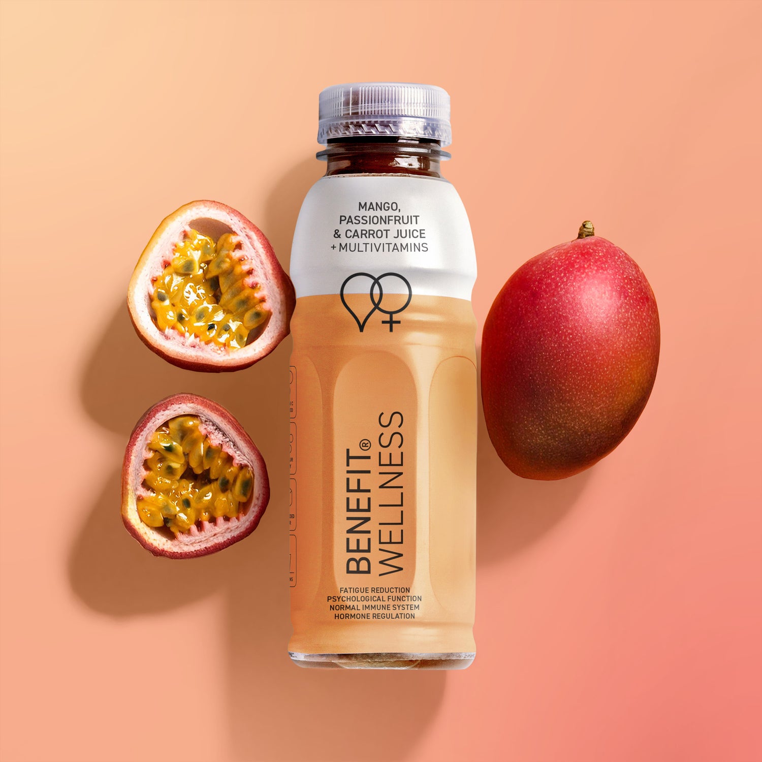 Designed to support women's general health and well-being, this mango, passionfruit, and carrot blend is enriched with vitamins and minerals that can contribute to healthier hormone levels and help you feel less tired and more focused.